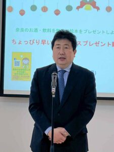 奈良のお酒や飲料を呑んで子供達(保育園)に絵本を贈呈する取り組みも今年で6年目となり、奈良県保育協議会会長の國原智恵様、天理市長並河健様などご臨席のもと、本日196冊の絵本を贈呈致しました。